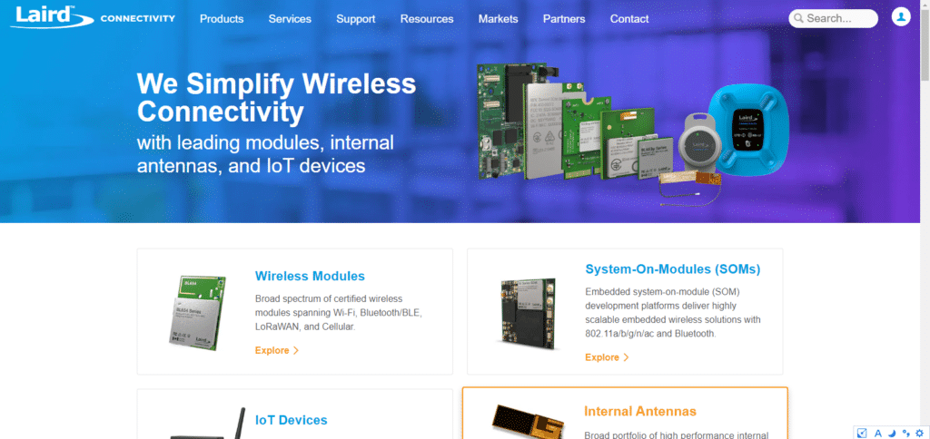 Laird Connectivity is considered one of the largest antenna manufacturers in the global market. They have been operating in the market for more than 30 years, based on locations in the USA, UK, and Taiwan. Most of their products are focused on providing IoT (Internet of Things) solutions.
